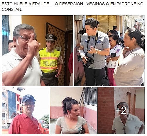 Sin embargo, el ciudadano Edisón Jaramillo, denuncia en su muro de la red social Facebook, que ciudadanos que habían sido empadronados incluso por el mismo, no constan. Como prueba de ello, incluye fotos de personas que sienten que sus derechos han sido vulnerados.