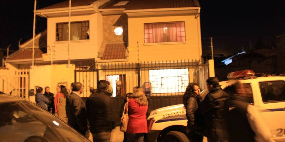Ciudadanos frente a la vivienda donde se cometió el crimen. Fotografía: Armando Suquisupa