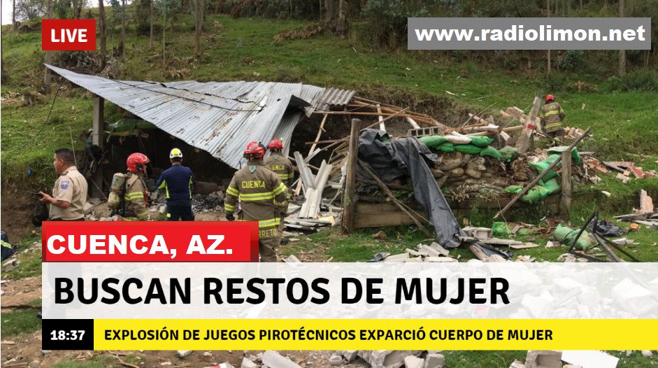 En la comunidad Paccha, de la parroquia Baños, Cuenca se produjo una explosión de material pirotécnico que se almacenaba en un galpón, el percance cobró la Digna Albarracín, de 45 años.